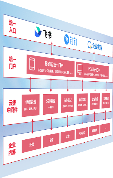 对协作平台提供支持服务,,,支持企业应用与协作平台对接,,,包含组织同步、、、消息集成、、、、待办集成等。。。支持目前主流的协作平台:钉钉、、、、企微和飞书。。